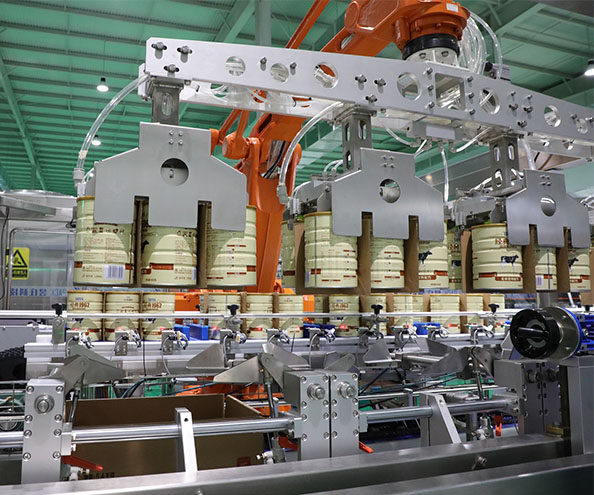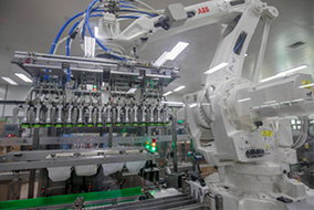 機(jī)器人裝箱機(jī)采用機(jī)器人裝箱,通過(guò)更換夾具,使其適合不同包裝物的裝箱需求,極大的提高了設(shè)備的靈活性、穩(wěn)定性和可靠性。